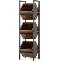 3層バスケットスタンド、木製フロアスタンド棚ユニット、キッチン、バスルーム、リビングルーム用の素朴なスタンディングオーガナイザー収納ラック